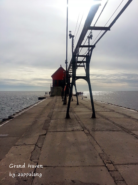 密歇根市是一个被巨湖环绕的城市, 从Grand Haven 这里可以看到那一望无际的巨型淡水湖, 整个就像在海边的感觉, 非常神奇。这里也是游客特别钟爱的地方, 现在是春天还有些冷的天气已经有很多人在这边停泊着露营车了。据闻夏天的时候这里想找个停靠的地方也没有的。