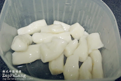 3。年糕泡温水至软,捞起备用。